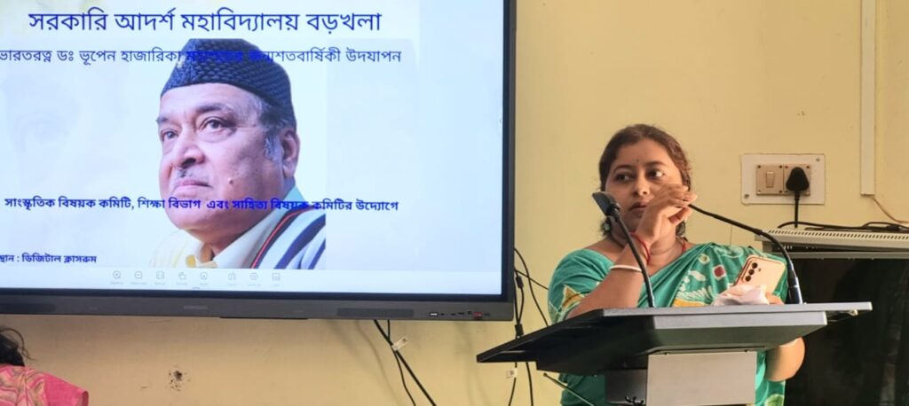 যুব বিচিত্রা প্রতিনিধি, শিলচর, ১৪ সেপ্টেম্বর :- ভূপেন হাজারিকার জন্ম শতবর্ষ উপলক্ষ্যে সরকারি আদর্শ মহাবিদ্যালয় বড়খলা ৮ সেপ্টেম্বর থেকে ১৩ সেপ্টেম্বর ২০২৫ পর্যন্ত সপ্তাহব্যাপী অনুষ্ঠানের আয়োজন করে। এই অনুষ্ঠানটি সমন্বয় করেন সাংস্কৃতিক কমিটির সমন্বয়কারী ডঃ রূপশ্রী পাল এবং শিক্ষা বিভাগের প্রধান মিস দীক্ষা