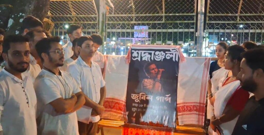 শ্রদ্ধাঞ্জলি জুবিন কে, এক মিনিট নীরবতা পালন করে বিদেহী আত্মার শান্তি কামনা করেন তাঁরা। এদিনের উপস্থিত সকলেই প্রতিশ্রুতিবদ্ধ যে গানের মাধ্যমে প্রতিটা মঞ্চে জুবিন কে বাঁচিয়ে রাখা হবে এবং এটাই মাধ্যম জুবিন গার্গ কে আমাদের হৃদয়ে রাখার এমনটাই জানালেন ধর্মনগরের বিভিন্ন শিল্পী সমাজ।