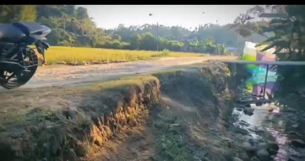 রাস্তার দু-দিকের অংশ ভেঙ্গে পড়েছে , রাস্তার মাঝে পুকুর সম গর্তের মিছিল হয়ে পড়েছে। অন্যদিকে রাস্তার মধ্যে রয়েছে একটি সেতু , সেই সেতুটি কাজ শেষ হতে না হতে একপ্রান্ত ভেঙ্গে যাচ্ছে। যানবাহন নিয়ে চলাচল করা