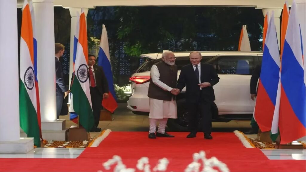 সংবাদ সংস্থা, ০৬ ডিসেম্বর :- বৃহস্পতিবার রাতেই দুদিনের সফরে রাশিয়ার প্রেসিডেন্ট ভ্লাদিমির পুতিন ভারতে পৌঁছে গিয়েছে। প্রধানমন্ত্রী নরেন্দ্র মোদী অভ্যর্থনা জানান তাঁকে। দু’দেশ তাদের দ্বিপাক্ষিক বৈঠকে বসবে।