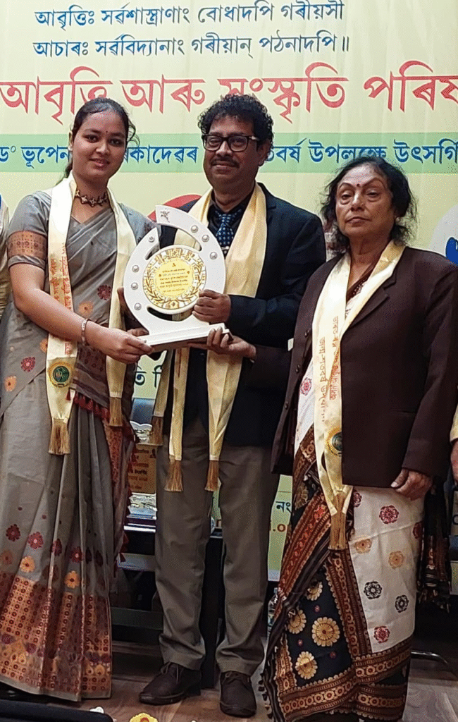 যুব বিচিত্রা প্রতিনিধি, বদরপুর, ২৫ ডিসেম্বর :- সম্প্রতি “অসম আবৃত্তি এবং সংস্কৃতি পরিষদ” এর উদ্যোগে অনুষ্ঠিত অসম আবৃত্তি মহোৎসব – ২০২৫ এ শ্রীভূমি জেলা সাফল্যের সঙ্গে দু-দুটো শ্রেষ্ঠ পুরস্কার ছিনিয়ে নিয়েছে। প্রদর্শনীমূলক দলীয় আবৃত্তি প্রতিযোগিতায় দ্বিতীয় শ্রেষ্ঠ পরিচালকের পুরস্কার এবং উপস্থাপনায় তৃতীয় শ্রেষ্ঠ পুরস্কার ও সম্মান লাভ করেছে শ্রীভূমি জেলা। এই দলের আবৃত্তিকার বিপ্লব দাশগুপ্ত সম্মানিত হয়েছেন দ্বিতীয় শ্রেষ্ঠ পরিচালক হিসেবে। উল্লেখ্য যোরহাট জেলা দলীয় ভাবে প্রথম এবং নগাঁও জেলার স্বপন বড়দলই প্রথম শ্রেষ্ঠ পরিচালক হিসেবে সম্মানিত হন। দিসপুরের পূর্ত বিভাগীয় প্রেক্ষাগৃহে গত ২০ শে ডিসেম্বর শনিবার প্রতিযোগিতাটি অনুষ্ঠিত হয়। এই প্রতিযোগিতায় আসামের বিভিন্ন জেলা থেকে ৩২ টি আবৃত্তির দল অংশগ্রহণ করেন। পরিষদের প্রধান সম্পাদক গুণীন ফুকন উপস্থিত সকলকে স্বাগত জানিয়েছেন। কার্যকরী সভাপতি ড. হিতেশ গোস্বামী
