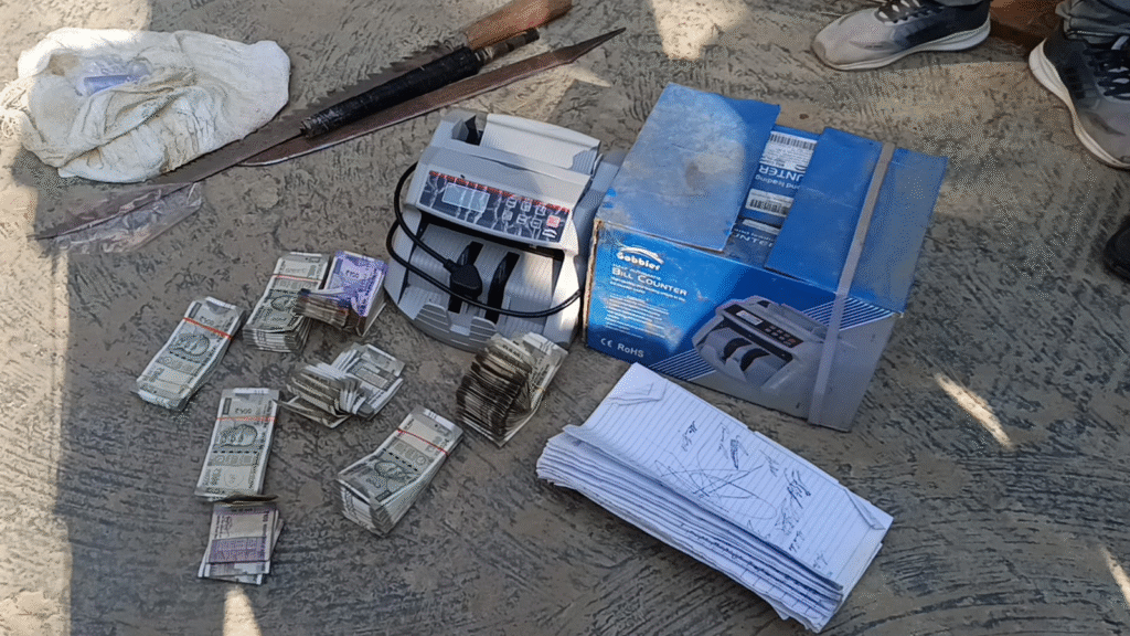 রমেন্দ্র গোস্বামী, ধর্মনগর, ৩০ জানুয়ারি :- উত্তর ত্রিপুরার ধর্মনগরে নেশা কারবারের বিরুদ্ধে বড়সড় সাফল্য পেল রাজ্য পুলিশের স্পেশাল টাস্ক ফোর্স (STF) এবং সীমান্তরক্ষী বাহিনী (BSF)। গোপন সূত্রে প্রাপ্ত তথ্যের ভিত্তিতে শুক্রবার দুপুরে ধর্মনগর থানাধীন ভাগ্যপুর গ্রামের ২ নং ওয়ার্ডের ইয়াকুবনগর এলাকায় কুখ্যাত নেশা কারবারি হাফিজ মিয়াঁর বাড়িতে যৌথ অভিযান চালানো হয়। অভিযান চলাকালীন হাফিজ মিয়াঁর বাড়িতে দীর্ঘক্ষণ তল্লাশি চালিয়ে বিপুল পরিমাণ আপত্তিকর ও সন্দেহজনক সামগ্রী উদ্ধার করে পুলিশ। উদ্ধার হওয়া সামগ্রীর মধ্যে রয়েছে নগদ প্রায় ৩ লক্ষ টাকা, একটি টাকা গননার মেশিন, নেশা সামগ্রী প্যাকেটজাত করার কাজে ব্যবহৃত বিপুল সংখ্যক খালি পলিথিন প্যাকেট, নেশা বাণিজ্যের যাবতীয় হিসাব সংবলিত একাধিক খাতা এবং বেশ কিছু ধারালো অস্ত্র। উদ্ধার হওয়া এসব সামগ্রী থেকে পুলিশের প্রাথমিক অনুমান, দীর্ঘদিন ধরেই এই বাড়ি থেকে সুসংগঠিতভাবে নেশা ব্যবসা পরিচালিত হচ্ছিল এবং এর সঙ্গে আরও একাধিক ব্যক্তি জড়িত থাকতে